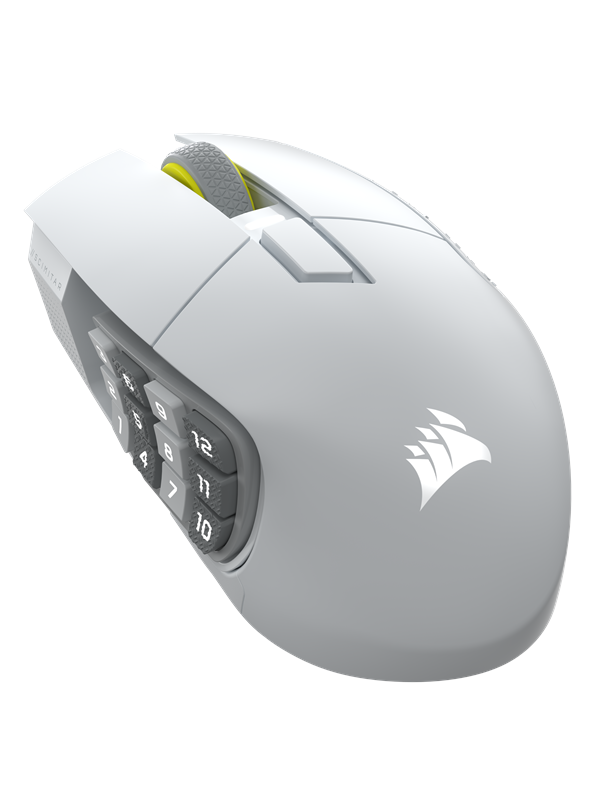 Trådløs gaming mus, kablet tilslutning: USB-A med aftageligt USB-C længde 1.8 meter, trådløs teknologi: SLIPSTREAM 2.4 GHz og Bluetooth 4.2, batteri: genopladelig, batterilevetid (op til): 500 (BT) / 150 (2.4GHz) timer, polling rate: 125 – 1000 Hz opdatering, optisk sensor – Corsair Marksman S med 100 – 33000 dpi (med justerbar dpi knap), max fart (speed): 750 IPS (inches per second), 16 knapper, scroll hjul, kan bruges af højrehåndet, vægt: 114 gram, kompatibilitet: Windows, hvid -CORSAIR SCIMITAR ELITE WIRELESS SE MMO-gamingmusen er med sine 16 knapper, en Key Slider med 12 knapper, som kan tilpasses, den imponerende præcise MARKSMAN S 33K-sensor og SLIPSTREAM WIRELESS med lav latenstid helt legendarisk MMO-gamingudstyr. Få fuld trådløs frihed, og nyd godt af op til 150 timers spil på en enkelt opladning. Styr situationen under intense raids og drabelige kampe med 16 knapper, der kan tilpasses individuelt, og den patenterede og justerbare Key Slider, som sætter 12 knapper inden for behagelig rækkevidde af din tommelfinger. Og opnå kontrol over din streaming som aldrig før med indbygget Elgato Stream Deck-integration, der giver dig hurtig adgang til dine vigtigste funktioner. Utrolig præcis 33k DPI MARKSMAN S-sensor 16 programmerbare knapper Justerbar Key Slider med 12 knapper Indbygget Elgato Stream Deck-integration Elgato Virtual Stream Deck-integration Hurtig, trådløs frihed med lav latenstid Op til 150 timers trådløs batterilevetid Lynhurtige debounce-fri optiske kontakter Behagelig for alle håndstørrelser Jævntglidende 100 % PTFE-musefødder Gem tre profiler i den indbyggede hukommelse