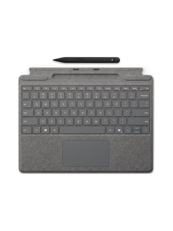 Tastatur, med trackpad, accelerometer, Surface Slim Pen 2 opbevaring og opladningsbakke, QWERTY, spansk, platinum, med Slim Pen 2, for Surface Pro 10, Pro 11, Pro 8, Pro 9, Pro Copilot+ PC, Pro Copilot+ PC for Business