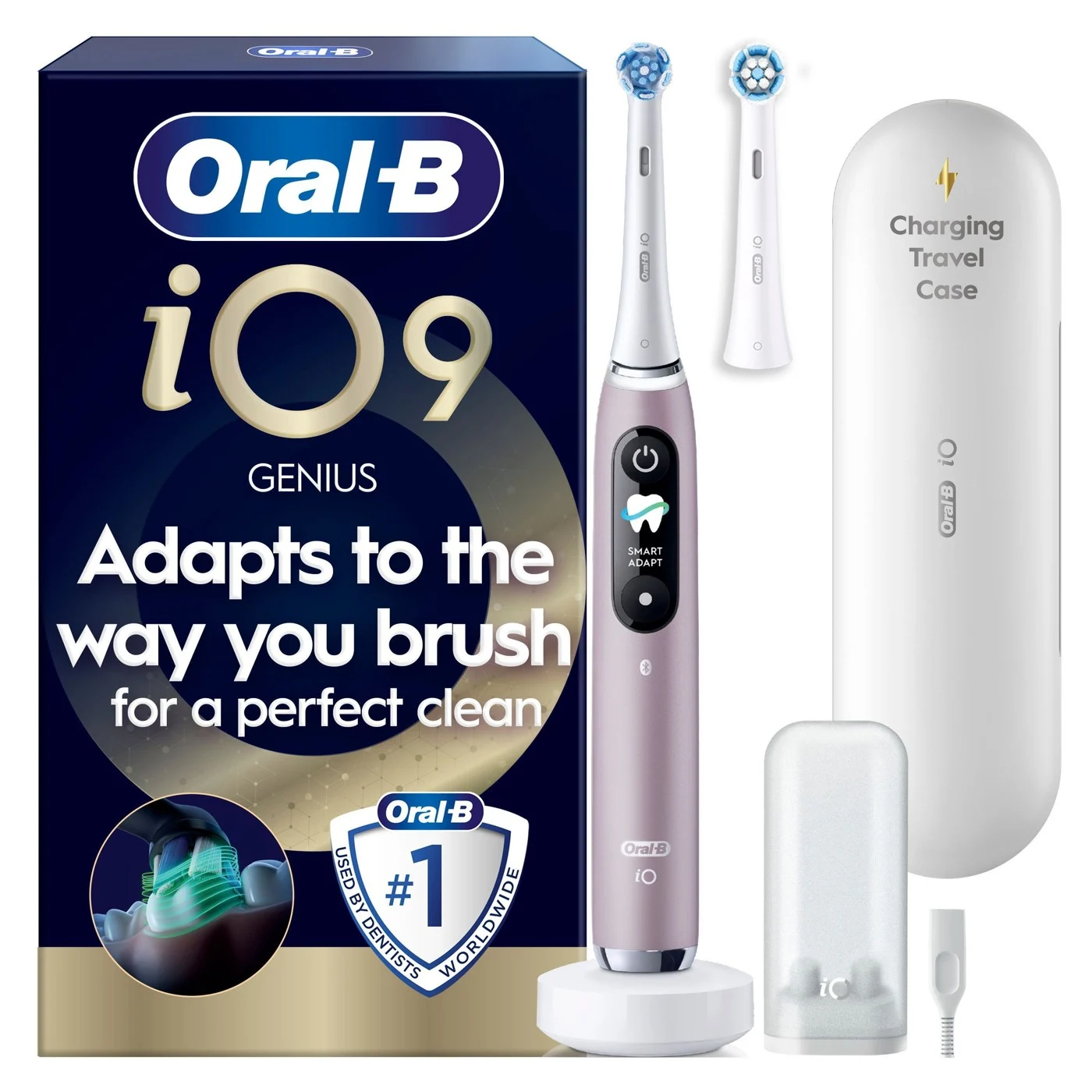 Oral B – iO9 Elektrisk Tandbørste – Pink – 2 Børstehoveder, Rejseetui med Oplader