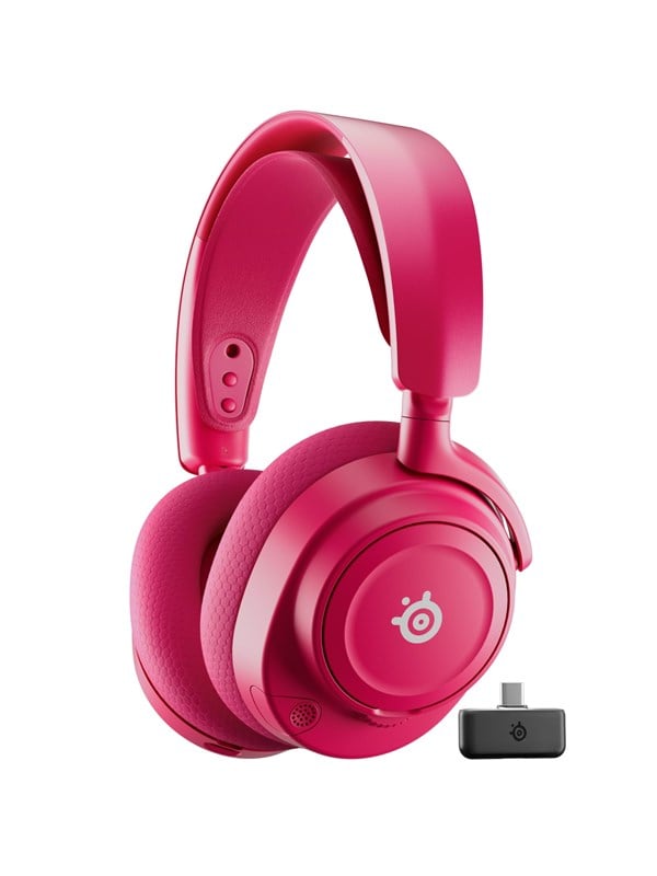 Gaming-headset til PlayStation & PC (også kompatibelt med Nintendo Switch, iPhone, Android og andre enheder med USB Type-C eller Bluetooth-forbindelse), over-ear full size, trådløs forbindelse via USB Type-C eller Bluetooth 5.0, op til 50 timers batterilevetid med hurtigopladning – 15 minutters opladning giver op til 6 timers gameplay, specialdesignede neodym-drivere for fremragende lyd, støjreducerende ClearCast Gen 2 boom-mikrofon, inkluderer USB Type-C-dongle og 0,3 meter opladerkabel, Rød Real-Time Audio Control: Find fjendens position før du ser dem med en professionelt tunet lydprofil til dit spil. GamingTrend kalder det “den største cheat code i branchen.” Optimeret hurtigopladning: Spil i 50+ timer og kom hurtigt tilbage i spillet med USB-C-optimeret hurtigopladning. Bland 2.4GHz trådløs og Bluetooth-lyd: Hør spillets lyd via USB-C multi-platform dongle og musik/opkald via Bluetooth på mobilen samtidig. USB-C Plug-&-Play til cross-platform gaming: Lås op for 2.4GHz trådløs gaming på flere enheder med en USB-C-dongle. Neodym-magnetdrivere: Få storslået lydkvalitet med et dybt og detaljeret lydbillede. Støjreducerende mikrofon: Støjreduktion minimerer baggrundsstøj med op til -25db. ClearCast Gen 2-mikrofonen har indtrækkelig arm. Holdbarhed. Komfort. Farve: Letvægtsdesign og åndbare puder holder dig komfortabel under lange gamingsessioner. Stålrammen med justerbart hovedbånd giver en tilpasset pasform til alle hovedstørrelser. Nu i tre nye farver, inkl. magenta. On-Ear-kontroller: Styr mute (med rød indikatorlys på mikrofonen) samt lydstyrke, strøm og parring direkte på headsettet. Besvar opkald med Bluetooth-knappen eller juster ChatMix med det dedikerede hjul – alt er lige ved hånden.