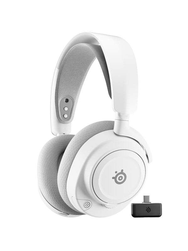Gaming-headset til PC & PlayStation (også kompatibelt med Nintendo Switch, iPhone, Android og andre enheder med USB Type-C eller Bluetooth-forbindelse), over-ear full size, trådløs forbindelse via USB Type-C eller Bluetooth 5.0, op til 50 timers batterilevetid med hurtigopladning – 15 minutters opladning giver op til 6 timers gameplay, specialdesignede neodym-drivere for fremragende lyd, støjreducerende ClearCast Gen 2 boom-mikrofon, inkluderer USB Type-C-dongle og 0,3 meter opladerkabel, Hvid Real-Time Audio Control: Find fjendens position før du ser dem med en professionelt tunet lydprofil til dit spil. GamingTrend kalder det “den største cheat code i branchen.” Optimeret hurtigopladning: Spil i 50+ timer og kom hurtigt tilbage i spillet med USB-C-optimeret hurtigopladning. Bland 2.4GHz trådløs og Bluetooth-lyd: Hør spillets lyd via USB-C multi-platform dongle og musik/opkald via Bluetooth på mobilen samtidig. USB-C Plug-&-Play til cross-platform gaming: Lås op for 2.4GHz trådløs gaming på flere enheder med en USB-C-dongle. Neodym-magnetdrivere: Få storslået lydkvalitet med et dybt og detaljeret lydbillede. Støjreducerende mikrofon: Støjreduktion minimerer baggrundsstøj med op til -25db. ClearCast Gen 2-mikrofonen har indtrækkelig arm. Holdbarhed. Komfort. Farve: Letvægtsdesign og åndbare puder holder dig komfortabel under lange gamingsessioner. Stålrammen med justerbart hovedbånd giver en tilpasset pasform til alle hovedstørrelser. Nu i tre nye farver, inkl. magenta. On-Ear-kontroller: Styr mute (med rød indikatorlys på mikrofonen) samt lydstyrke, strøm og parring direkte på headsettet. Besvar opkald med Bluetooth-knappen eller juster ChatMix med det dedikerede hjul – alt er lige ved hånden.